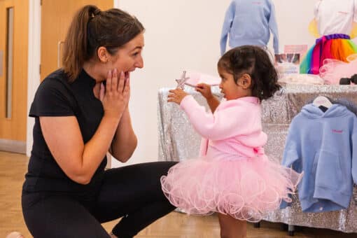 Your child can join our Tots ballet classes from as young as 6 months old! Right from the early days of tummy time, rolling, bottom-shuffling and crawling, your little one will love exploring our sensory-filled classes. Our ballet classes for babies offer a gentle introduction to music and dance for your little one. They’re also the perfect opportunity to meet other local grown-ups with children of a similar age too!
